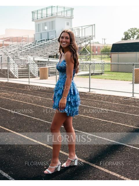 • A-line Appliques Lace Short/Mini Tulle Corset Convertible Homecoming Dress