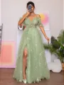 Elevate your style in this A-line dress featuring a cold-shoulder design, sleeveless silhouette, and delicate appliques lace. The dress is elegantly completed with a floor-length lace skirt, creating a chic and enchanting ensemble.