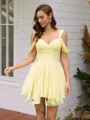 • A-line Cold Shoulder Pleated Short/Mini Chiffon Corset Homecoming Dress