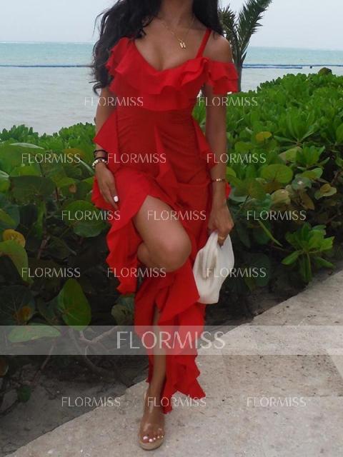 The A-line Cold Shoulder Sleeveless Ruffles Ankle-Length Bridesmaid Dress in Chiffon offers a blend of modern style and timeless elegance. With its A-line silhouette, chic cold shoulder neckline, and sleeveless design, this dress exudes sophistication and grace. The ruffles cascade delicately along the shoulders and bodice, adding a romantic touch to the chiffon fabric. The ankle-length hemline adds a contemporary flair, perfect for bridesmaids who want a chic and stylish look. Ideal for weddings or special occasions, this dress ensures bridesmaids feel both beautiful and comfortable throughout the celebration.