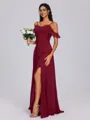 • Sheath/Column Off-the-Shoulder Sweep Train Polyester Bridesmaid Dresses With Leg Slit
