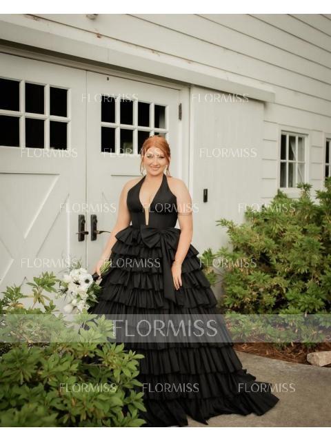 • A-line Halter Bow Sweep Train Corset Porm Dress