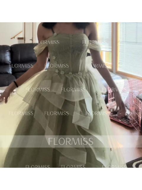 This enchanting A-line dress features an off-the-shoulder neckline that adds a romantic and feminine touch. Crafted with delicate lace appliques, the bodice showcases intricate detailing that blends seamlessly into the flowing tulle skirt. The floor-length silhouette creates an elegant and ethereal look, perfect for formal events, weddings, or proms. The corset-style bodice accentuates the waist for a flattering fit, combining timeless sophistication with modern charm.