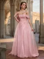• A-line Off-the-Shoulder Appliques Lace Sweep Train Corset Dress