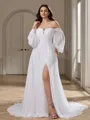 A-line Off-the-Shoulder Long Sleeves Pleated Court Train Chiffon Wedding Dress
