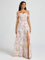 • Sheath/Column Off-the-Shoulder Sweep Train Polyester Bridesmaid Dresses With Leg Slit