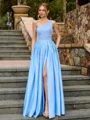 This elegant A-line prom dress features a chic one-shoulder neckline and sleeveless design. Crafted from smooth charmeuse, it flows gracefully to a floor-length silhouette, while delicate beading adds a touch of sparkle and sophistication. Perfect for prom or formal occasions.