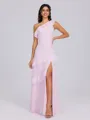 • Sheath/Column Off-the-Shoulder Sweep Train Polyester Bridesmaid Dresses With Leg Slit