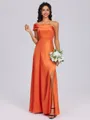 • Sheath/Column Off-the-Shoulder Sweep Train Polyester Bridesmaid Dresses With Leg Slit