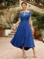 • A-Line/Princess Chiffon Applique Bateau 1/2 Sleeves Tea-Length Mother of the Bride Dresses