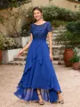 • A-Line/Princess Chiffon Applique Bateau Short Sleeves Asymmetrical Mother of the Bride Dresses