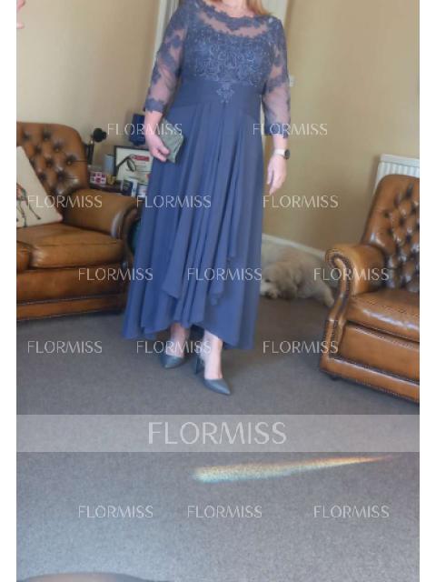 • A-Line/Princess Chiffon Applique Scoop 3/4 Sleeves Asymmetrical Mother of the Bride Dresses