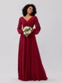 • A-Line/Princess Chiffon Ruched V-neck Long Sleeves Floor-Length Bridesmaid Dresses