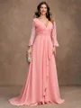 • A-Line/Princess Chiffon Ruched V-neck Long Sleeves Sweep/Brush Train Mother of the Bride Dresses