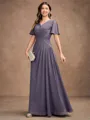 • A-Line/Princess Chiffon Ruched V-neck Short Sleeves Floor-Length Mother of the Bride Dresses