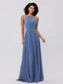 • A-Line/Princess Chiffon Ruffles Halter Sleeveless Floor-Length Bridesmaid Dresses