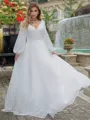 • A-line/Princess Chiffon V-neck Long Sleeves Sweep Train Wedding Dress