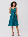 • A-Line/Princess Silk Like Satin Ruffles Spaghetti Straps Sleeveless Knee-Length Bridesmaid Dresses