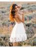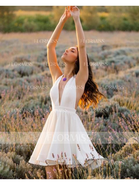 A-Line/Princess Halter Short/Mini Stretch Crepe Homecoming Dress With Cascading Ruffles