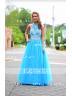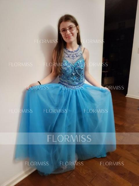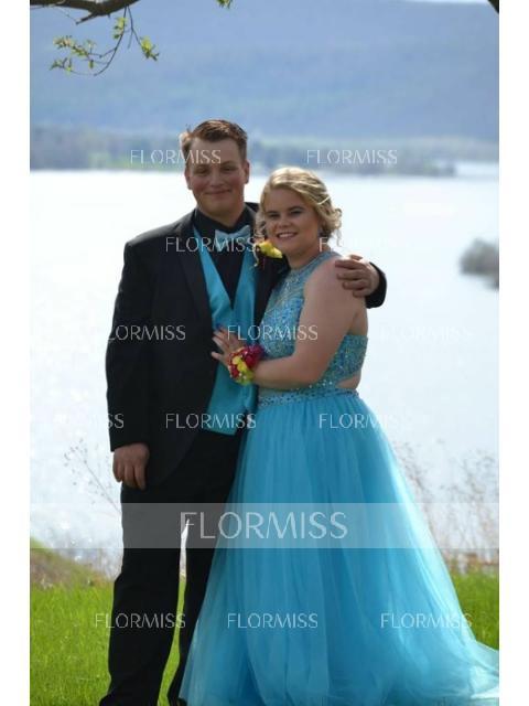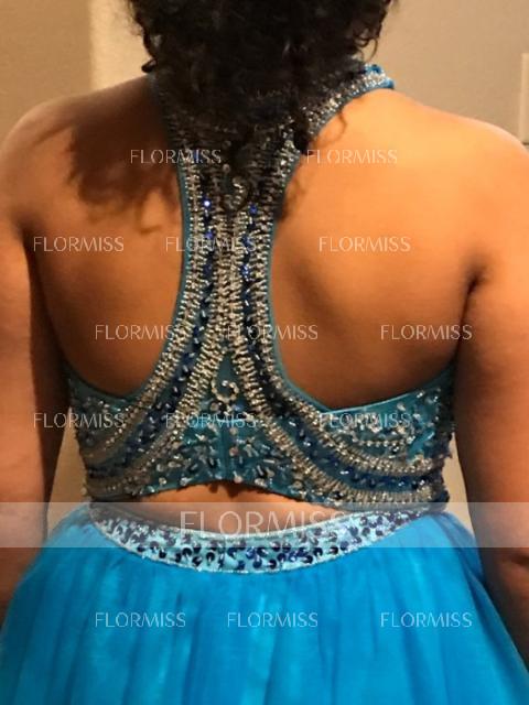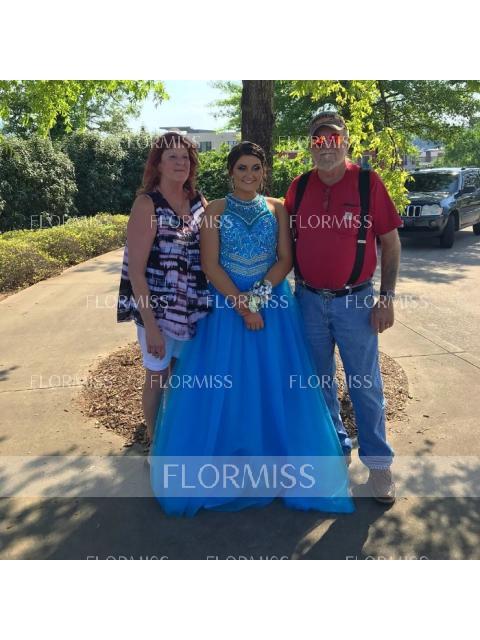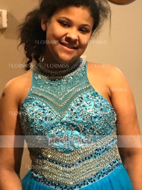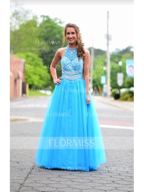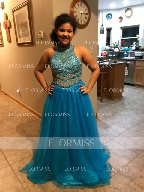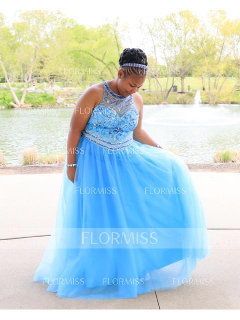• A-Line/Princess Jewel Sweep Train Tulle Prom Dress With Beading