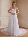 • A-Line/Princess Lace Spaghetti Straps Sleeveless Chapel Train Wedding Dresses