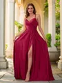 • A-Line/Princess Silk Like Satin Ruched V-neck Sleeveless Sweep Train Dresses