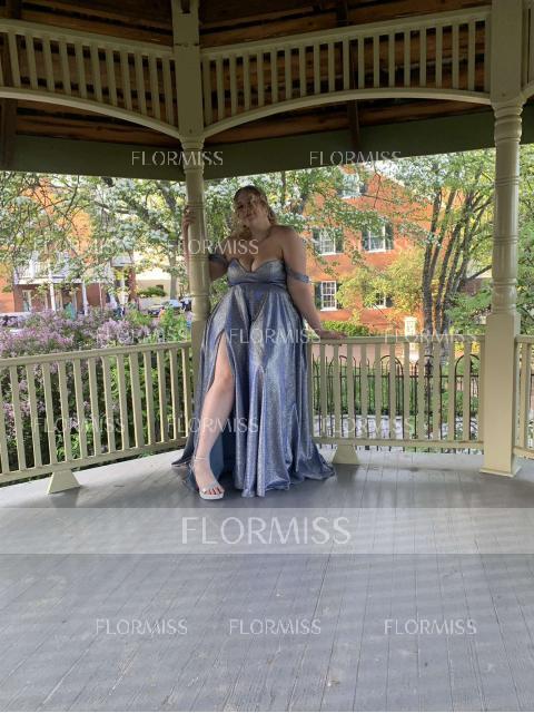 • A-Line/Princess Off-the-Shoulder Sweep Train Prom Dress With Leg Slit