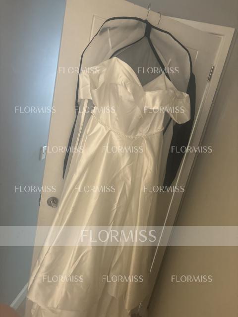 • A-Line/Princess Off-the-Shoulder Sweep Train Satin Wedding Dresses