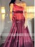 • A-Line/Princess One-Shoulder Floor-Length Satin Prom Dress With Leg Slit