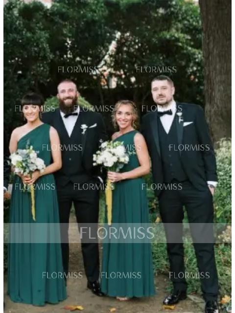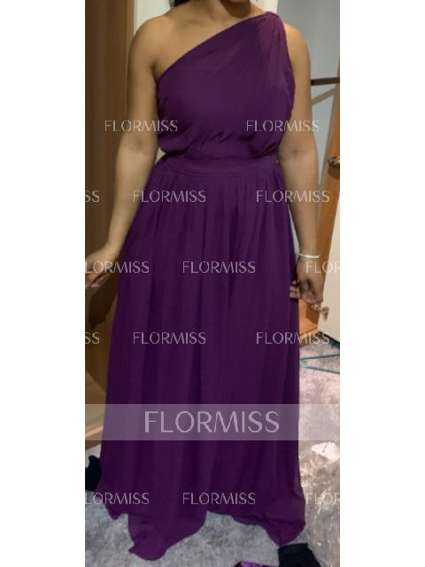 • A-line/Princess One-Shoulder Floor-Length Sleeveless Chiffon Bridesmaid Dress