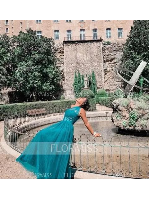• A-line Chiffon V-neck Pleated Floor-Length Porm Dress