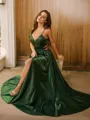 A-Line/Princess Ruffles V-neck Sleeveless Sweep Train Dresses