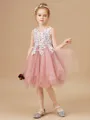 A-Line/Princess Scoop Knee-Length Tulle Junior Bridesmaid Dresses With Appliques Lace