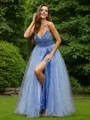 • A-Line/Princess Sequins Ruffles V-neck Sleeveless Floor-Length Dresses
