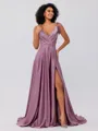 • A-Line/Princess Silk like Satin Ruffles V-neck Sleeveless Sweep/Brush Train Bridesmaid Dresses