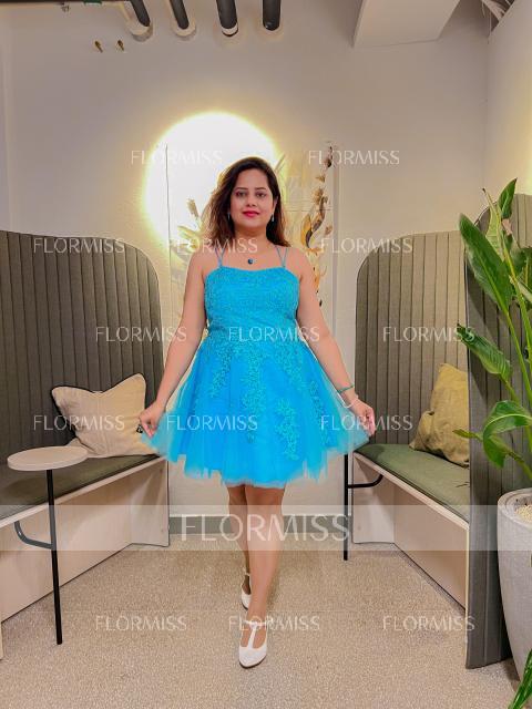 A-Line/Princess Spaghetti Straps Short/Mini Tulle Homecoming Dresses With Appliques Lace