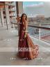 • A-Line/Princess Spaghetti Straps Sweep Train Silk like Satin Prom Dress With Leg Slit