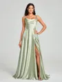 A-line/Princess Square Sweep Train Sleeveless Silk Like Satin Bridesmaid Dress