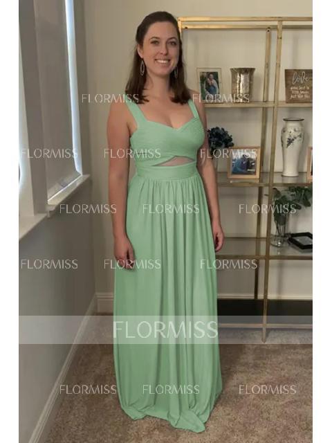 • A-Line/Princess Straps Floor-Lengt Sleeveless Chiffon Bridesmaid Dress