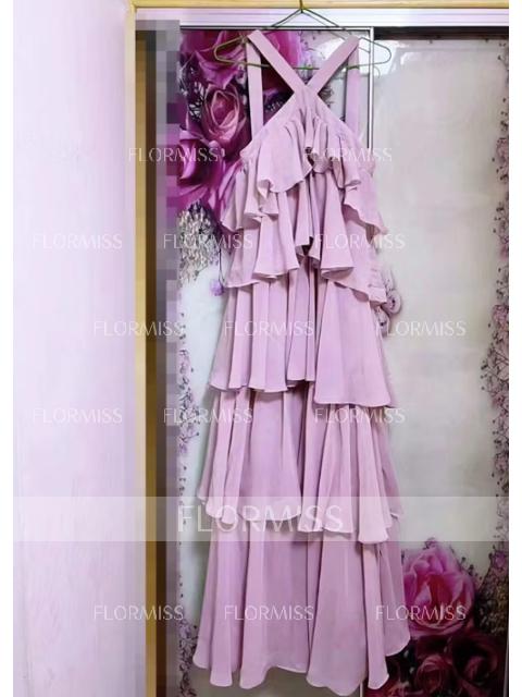 • A-Line/Princess Straps Floor-Length Chiffon Porm Dress