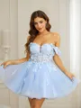• A-Line/Princess Tulle Applique Off-the-Shoulder Sleeveless Short/Mini Dresses