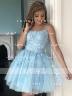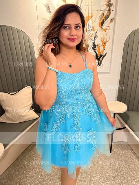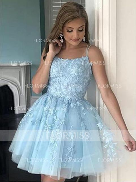 • A-Line/Princess Tulle Applique Spaghetti Straps Sleeveless Short/Mini Dresses