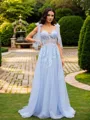 A-Line/Princess Tulle Applique Straps Sleeveless Sweep Train Dresses