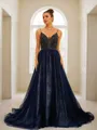 • A-Line/Princess Tulle Beading V-neck Sleeveless Sweep Train Dresses