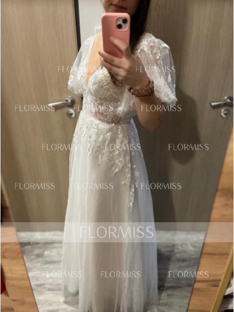 Note:The dress does not include any accessories in the picture, such as wraps/jackets, gloves, veil, handbag, etc. The tulle matches the model's skin tone and ships by default, if you want to change the tulle color or have questions about it. For more questions, you may choose to Chat now or Email us.