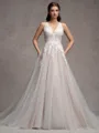• A-Line/Princess Tulle Lace V-Neck Sleeveless Court Train Wedding Dresses