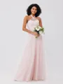 A-Line/Princess Tulle Ruffles Halter Sleeveless Floor-Length Bridesmaid Dresses