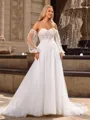 A-line/Princess Tulle Sweetheart Long Sleeves Court Train Wedding Dresses