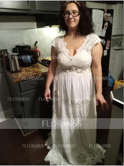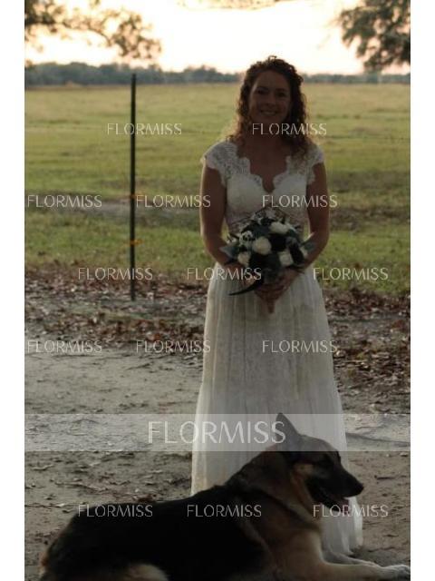 • A-Line/Princess V-neck Floor-Length Lace Wedding Dresses
