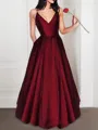 • A-Line/Princess V-neck Floor-Length Satin Evening Dresses